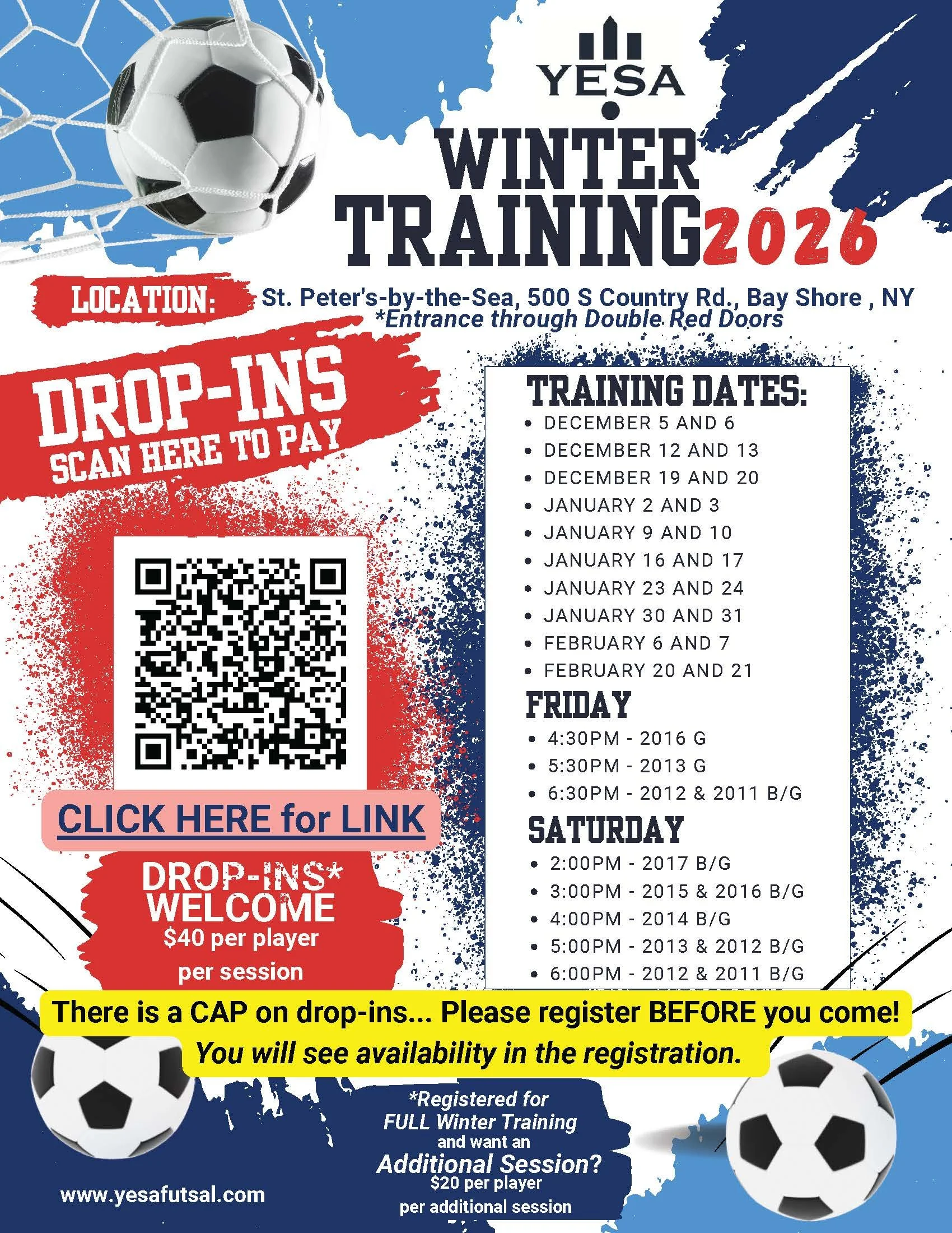 Winter Training is on Fridays and Saturdays STARTING December 12 and 13, 2025